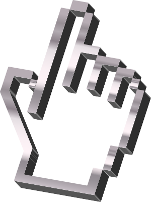 A 3D metallic hand pointer cursor.