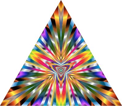 A colorful triangular shape.