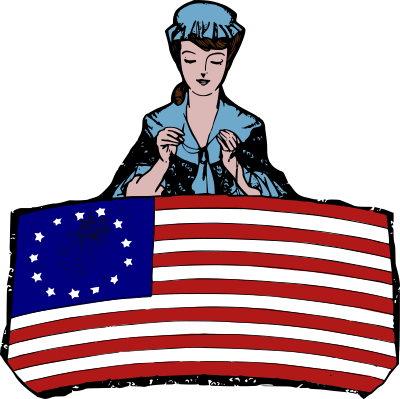 The (mostly mythical?) story is that Betsy Ross made the First American flag. Here is a synthesized version I hand coloured so you can use it in a school report or anything like that! Enjoy