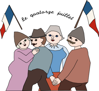 Le quatorze juillet (14th of July) is kind of like France's foundation day, it celebrates the beginning of the French Revolution. This odd clipart is based on an even odder painting (in the public domain) by Makowski. I thought it would be good to fill this missing clipart gap. enjoy