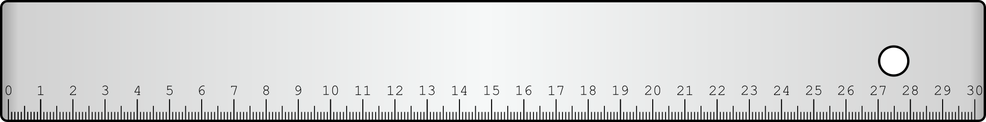 A rule using millimetres and centimeters.
