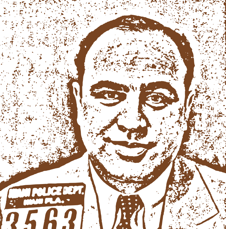 Al Capone's Mug Shot. This one was taken in Florida. One of the most notorious criminals in modern history. https://en.wikipedia.org/wiki/File:Al_Capone_in_Florida.jpg