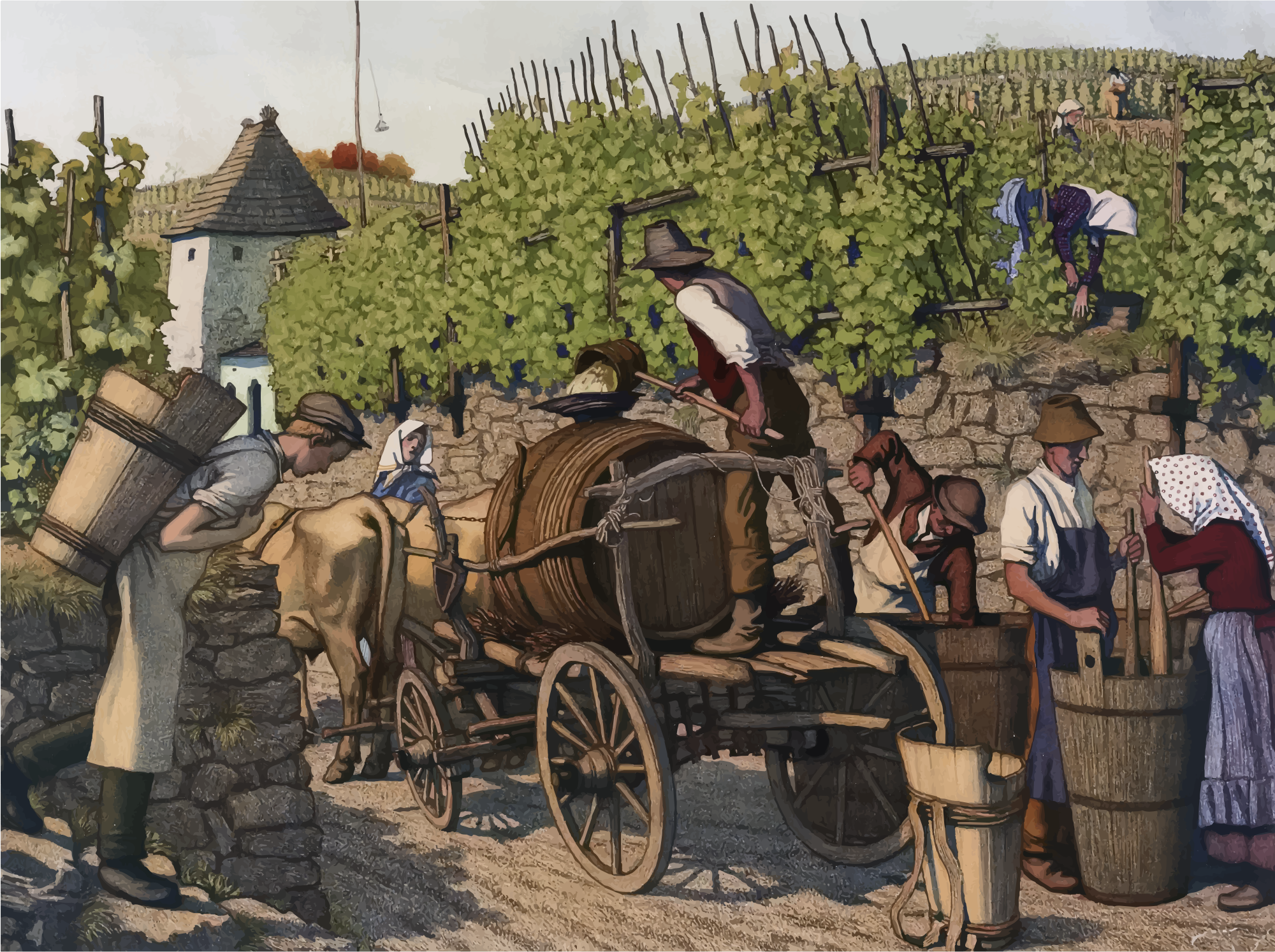 - Grapes Harvesting Illustration Labor Landscape Vintage Work