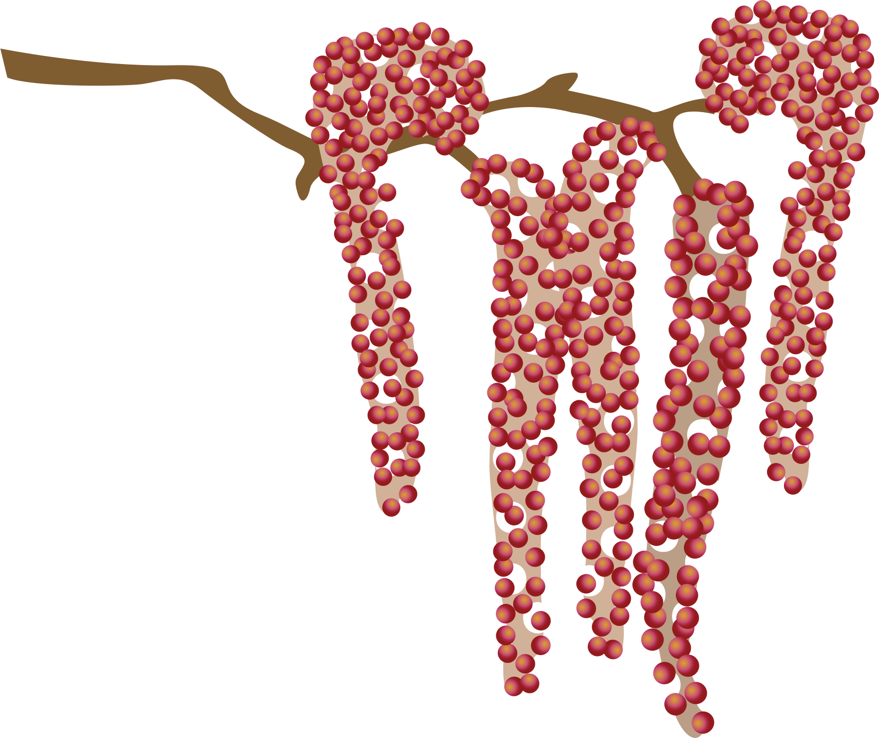 A catkin grows on trees in the spring.