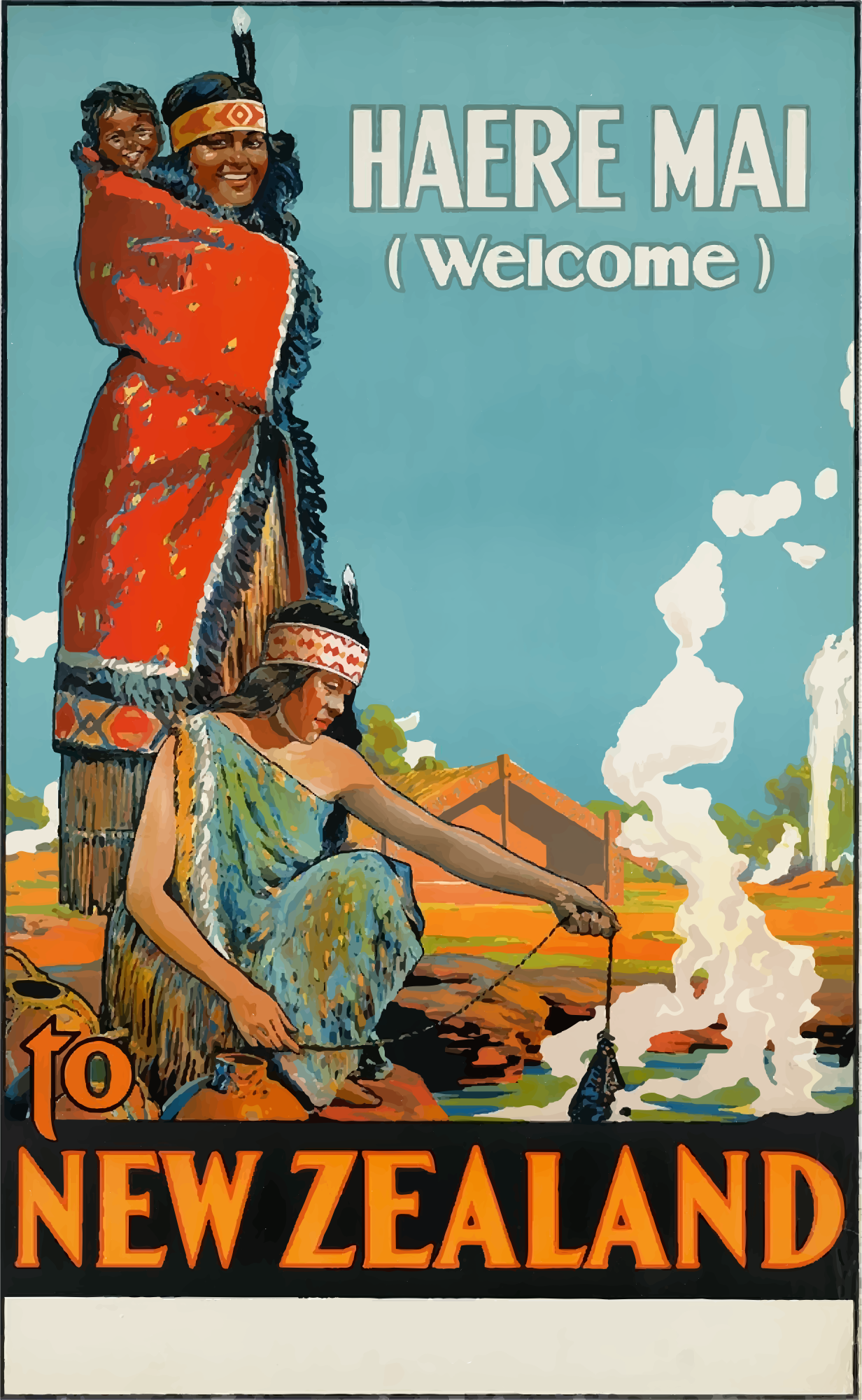 Vintage Travel Poster New Zealand from a pd image.
