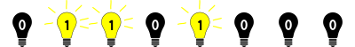 A graphical representation of an eight-bit binary string (a byte) with light bulbs; 0 is OFF, 1 is ON. Derived from https://openclipart.org/detail/155965/light-bulb-minimal-design by MrTossum