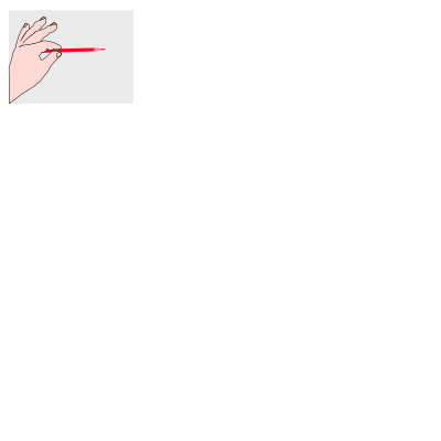 An animation which represents a red pencil being wagged between an index finger and a thumb.