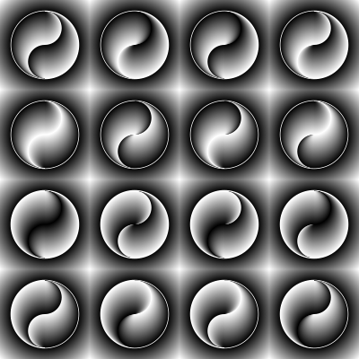 A side way of the yin-yang symbol, filled with radial gradients.
