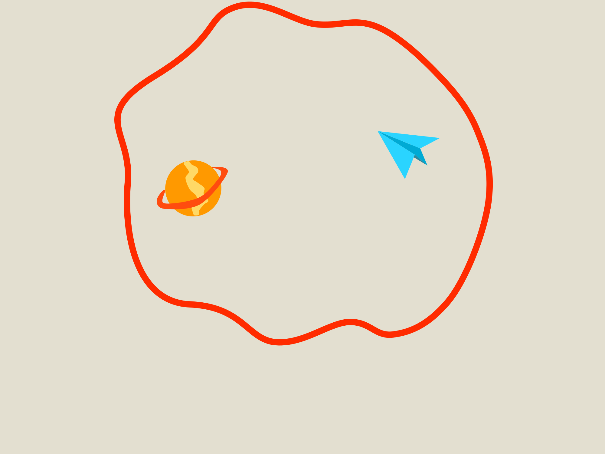 A planet and an airplane in a bubble.