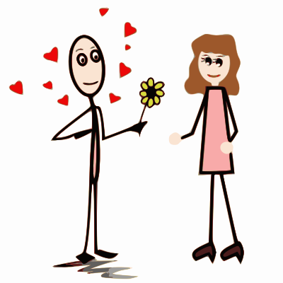 Clipart illustrant l'expression française "avoir le béguin" qui signifie "Etre amoureux" = "To be in love" .