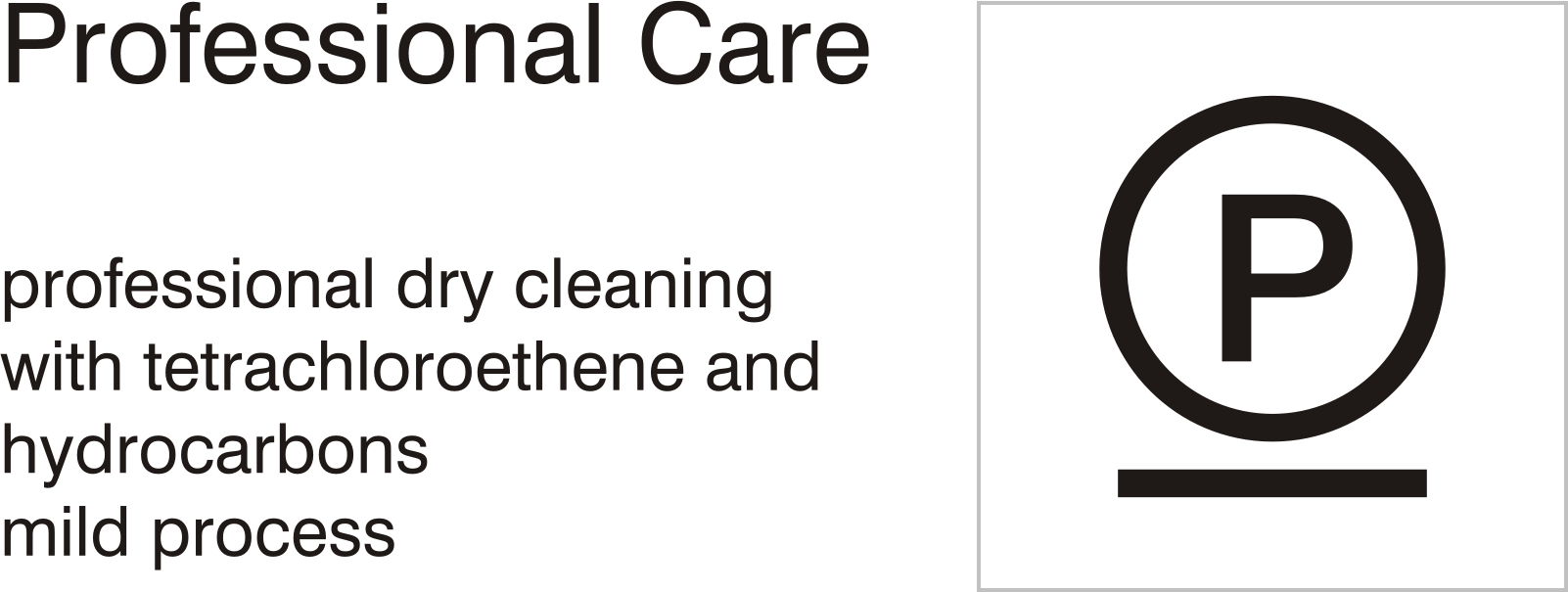 Care symbols, professional care: dry clean with tetrachloroethene and hydrocarbons - mild process