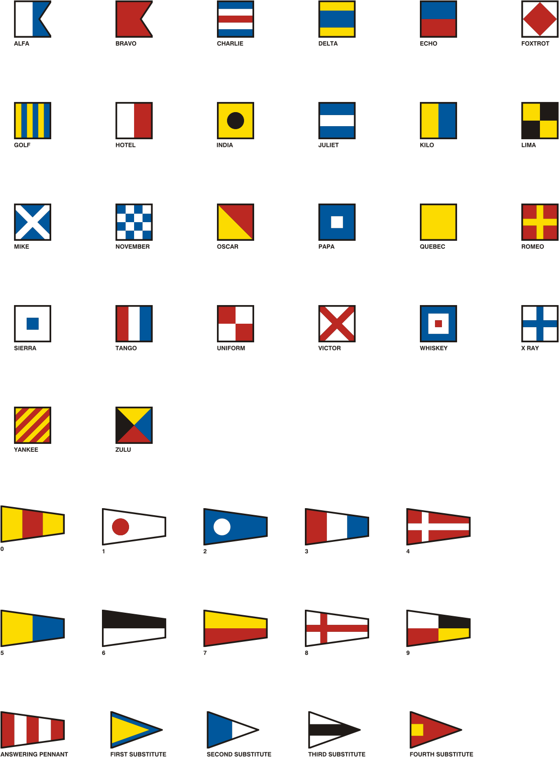 flags of the international naval alphabet
