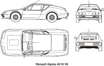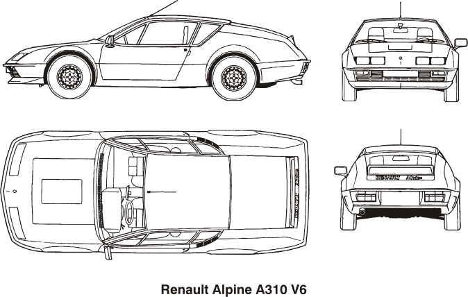 historical Renault sport car, technical drawing vector