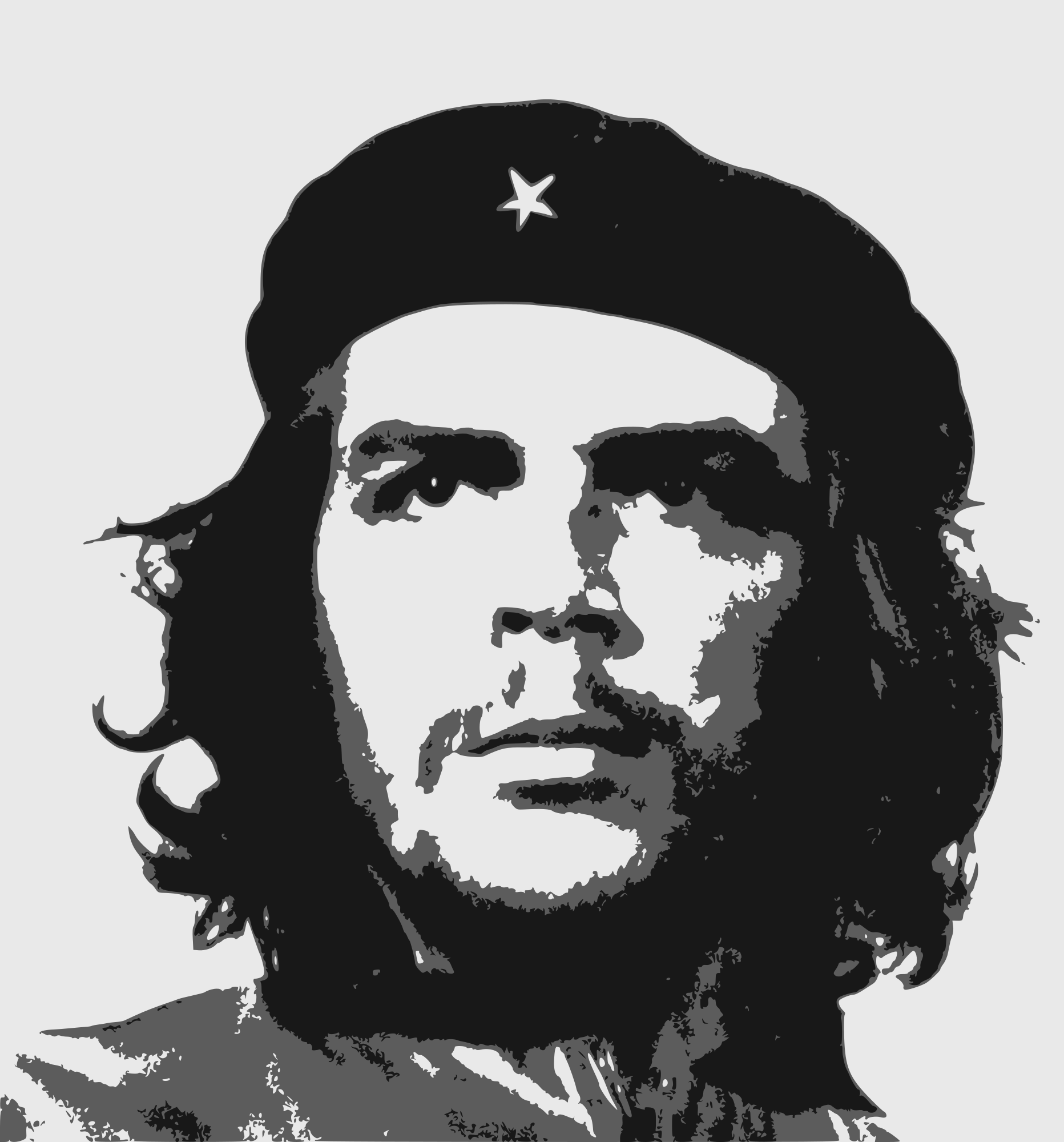 From an image on Pixabay, in turn obviously from Alberto Korda's famous photo. Made the star on the cap show better and thought an extra shade was required over and above the black and white image often presented.