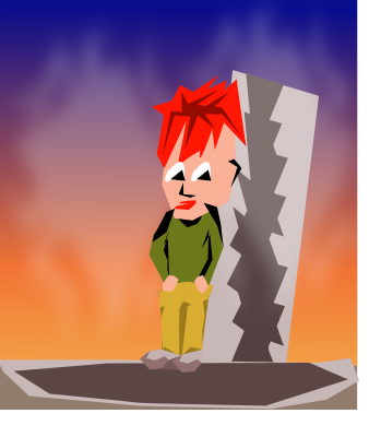 A boy leaning against a piece of a wall.