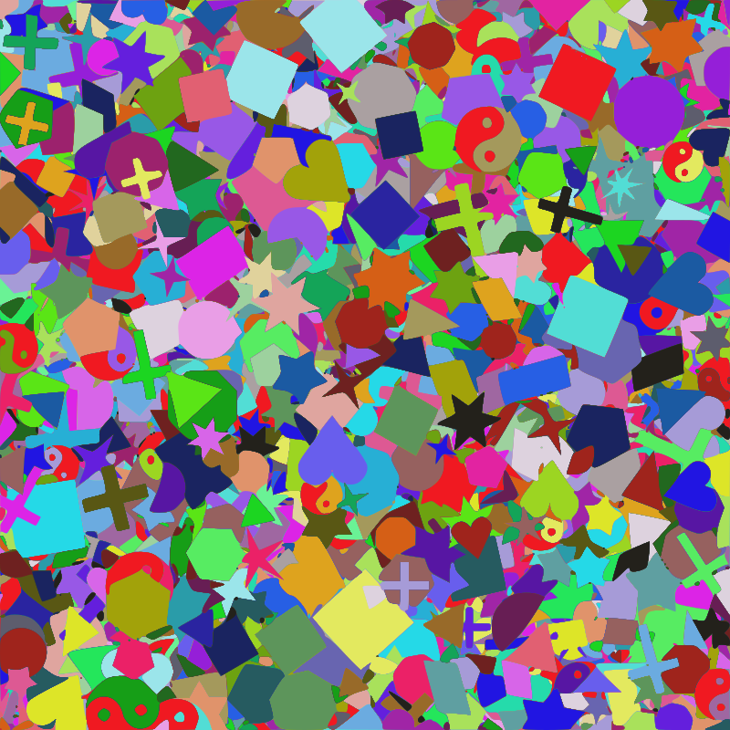 A random collection of shapes of random colours and random sizes in random positions - it's random.