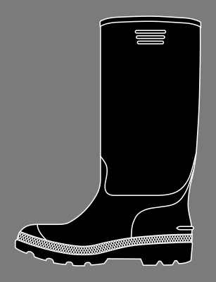 A black rubber boot, in a simple style.