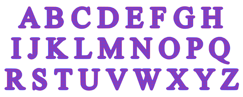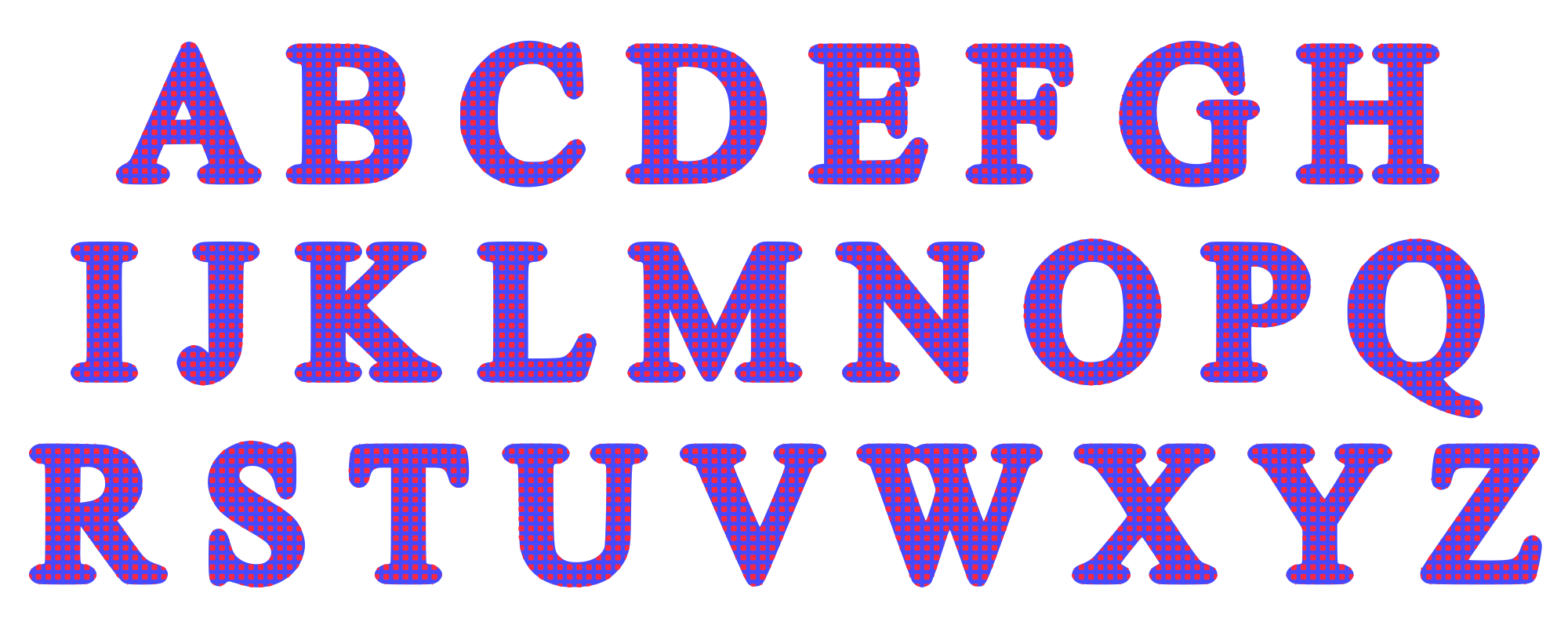 An alphabet with a colourful pattern.