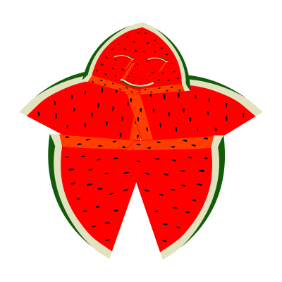 A watermeloid who is made from 9 watermelon slices.Haven't you eaten watermelonthis summer ?