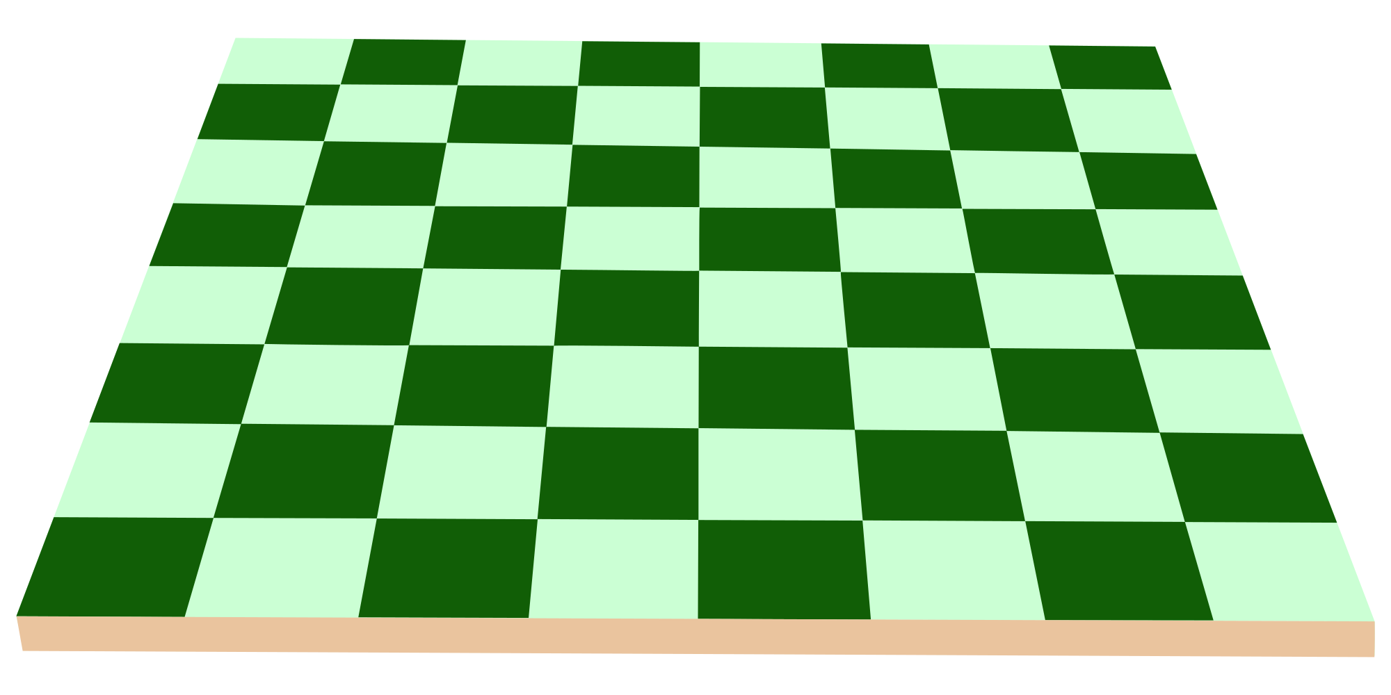 This is a perspective view of chessboard.The surface color is green and dark-green .