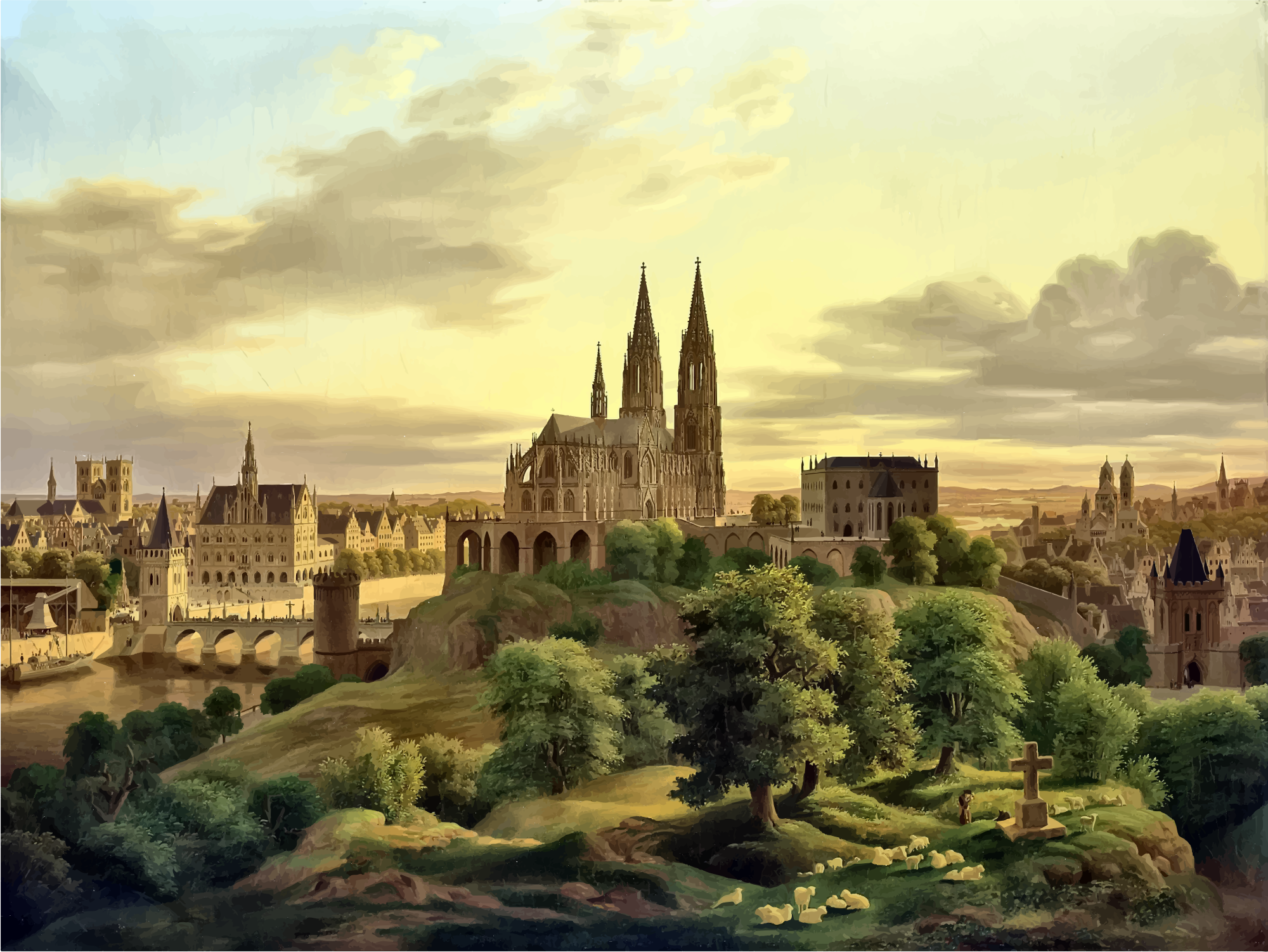 https://commons.wikimedia.org/wiki/File:Carl_Georg_Adolph_Hasenpflug_-_Mittelalterliche_Stadt.jpg
