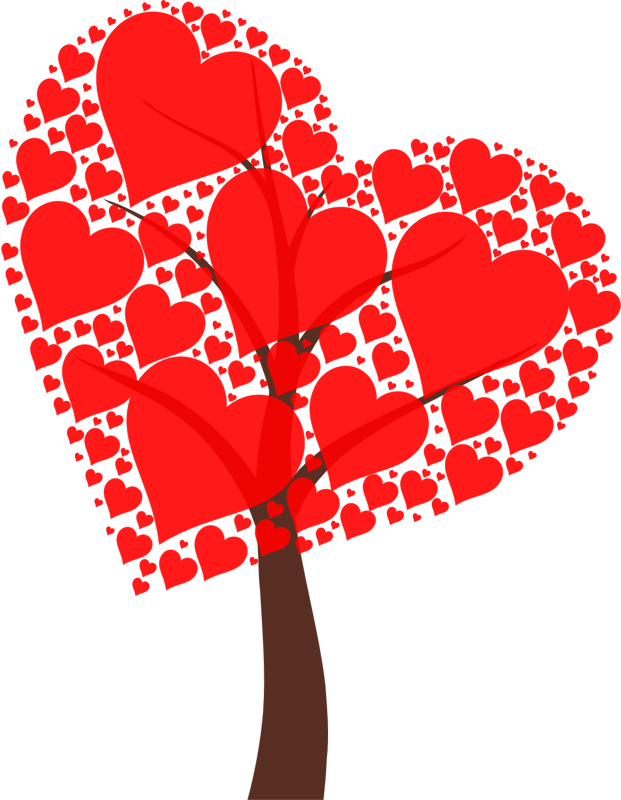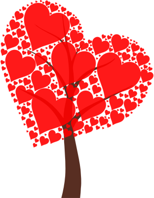 Hearts growing from a tree.