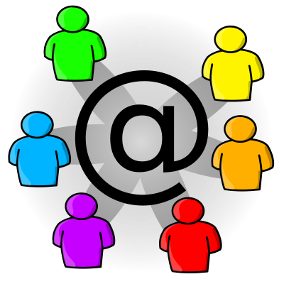 Icon for representation of mailing lists. You see some abstract people connected to an "@"-character in the middle.