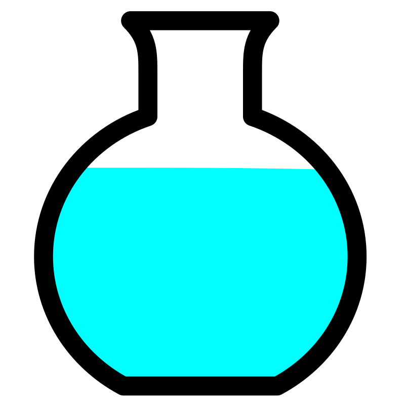 A round flask with cyan liquid.