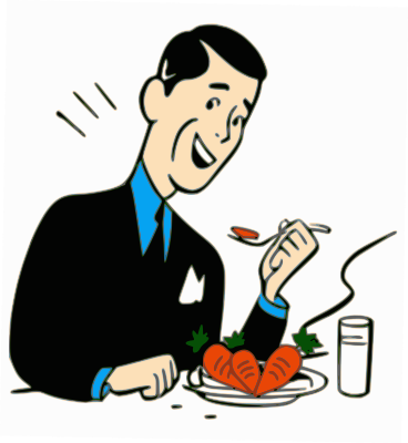 Clipart illustrant l'expression française "Mange des carottes ça rend aimable" = becoming kind by eating carrots