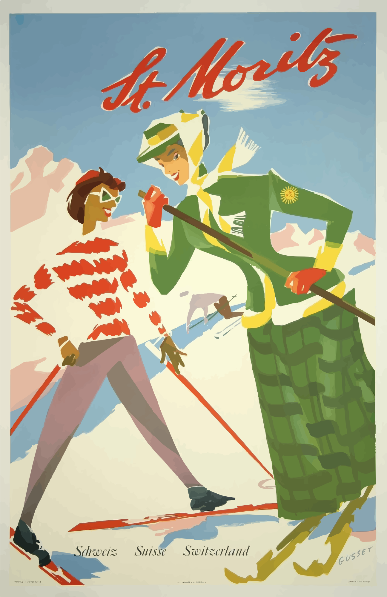 - Comic characters Europe Poster St Moritz Switzerland Travel Vintage