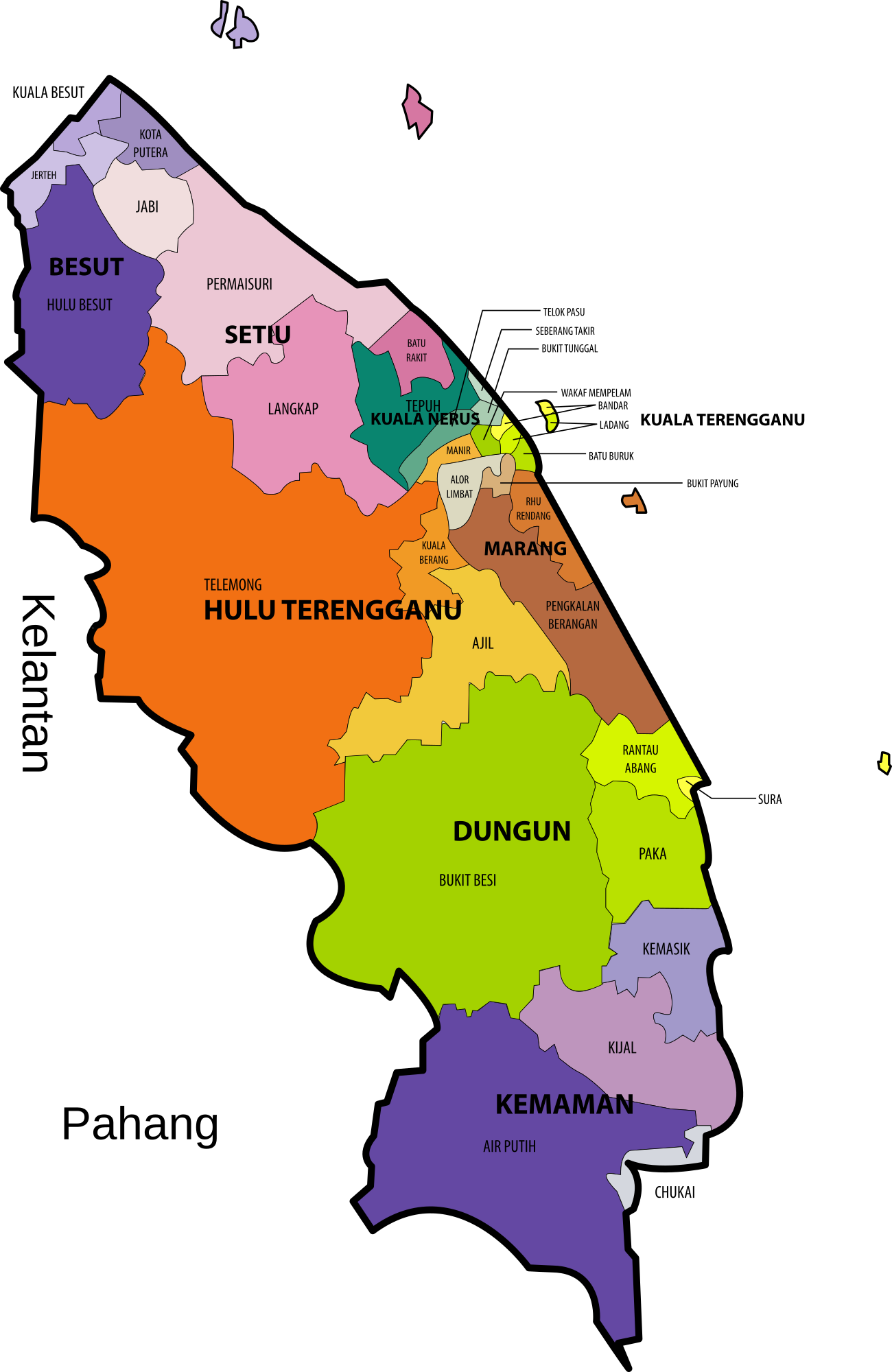 Map of the constituencies of the Terengganu State Legislative Assembly, Terengganu, Malaysia.