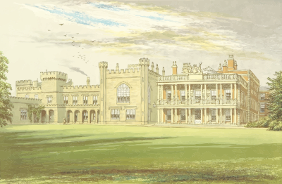 From a drawing in 'The Ancestral Homes of Britain; containing examples of its noblest castles, halls, and mansions', Francis Morris, 1868.