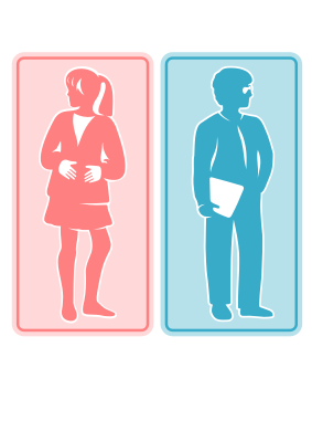 A pink girl schoolgirl sign and blue boy sign.