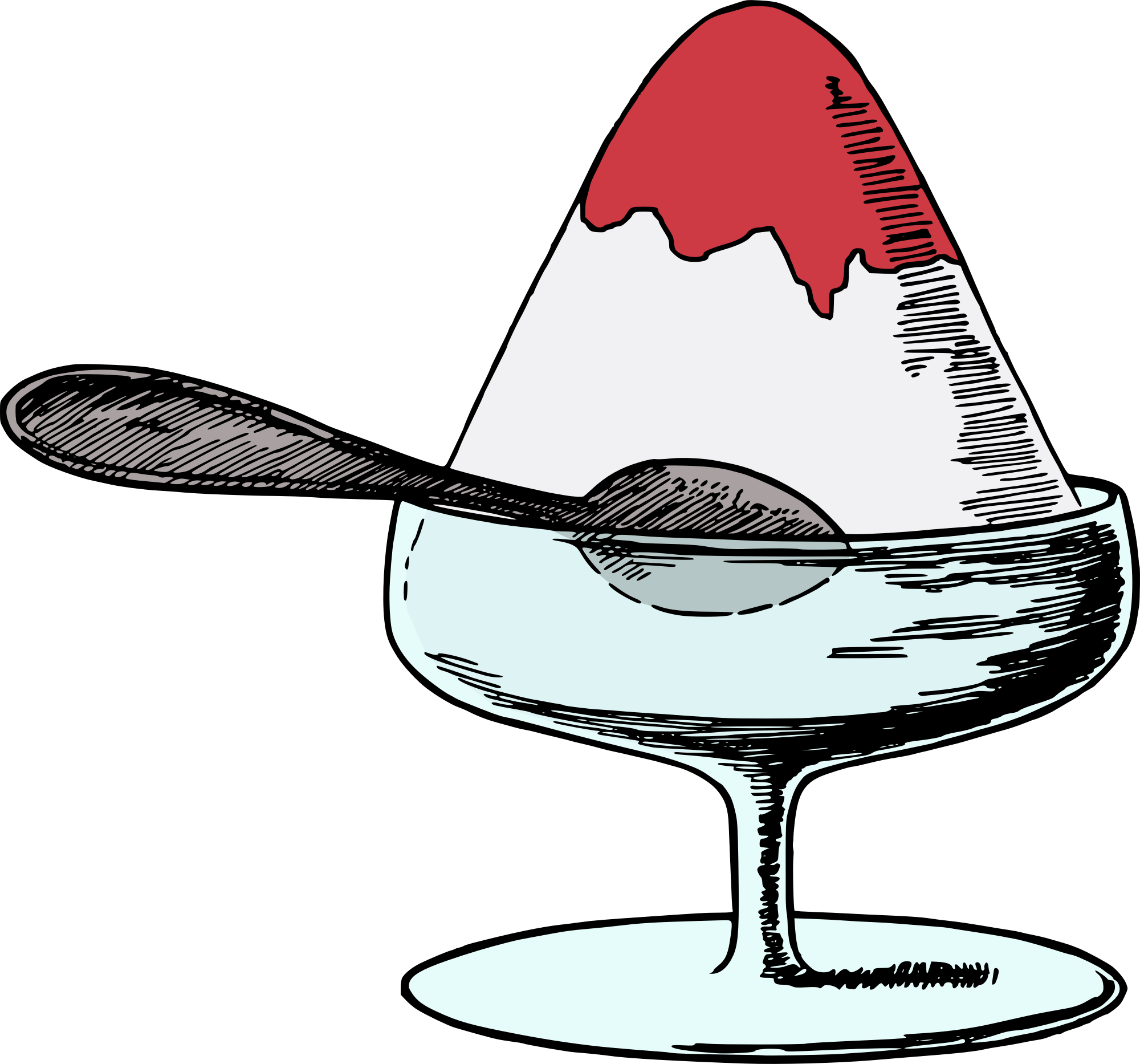 This was originally an ancient advertisement for icecream. But I figure there was plenty of ice cream images on openclipart, so I modified this into a "shaved ice" clipart image and added colours, enjoy!