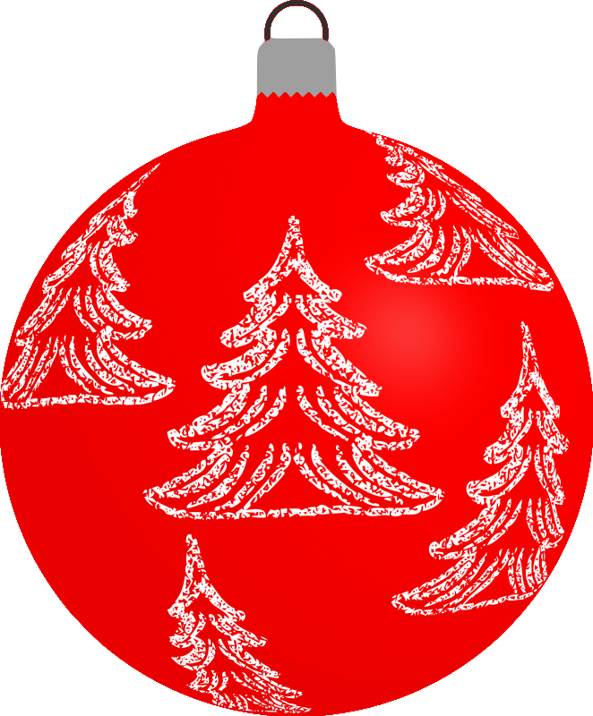 A bauble with a Christmas tree pattern. Drawn in Paint.net and vectorized in Inkscape. Red variant.