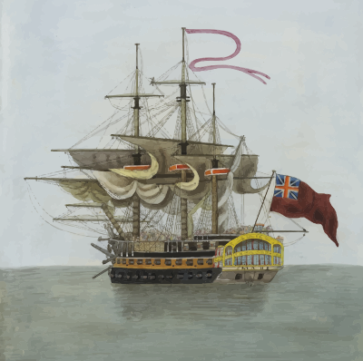 Mars, a naval battleship prominent in the Napoleonic wars. By an anonymous artist, 1825.