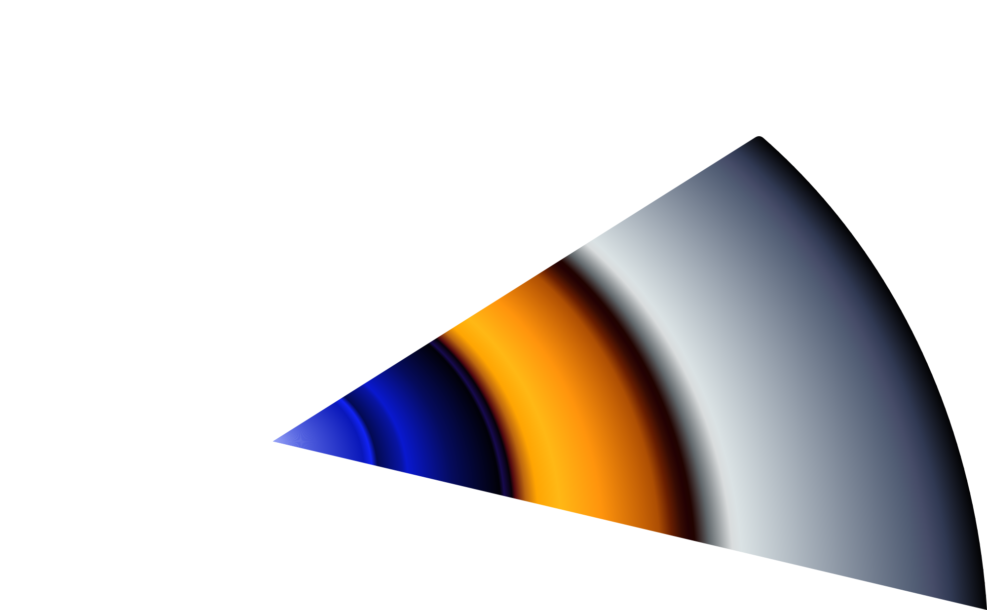 A 45° turn in a golden ratio logarythmic spiral, with a gradient fill.