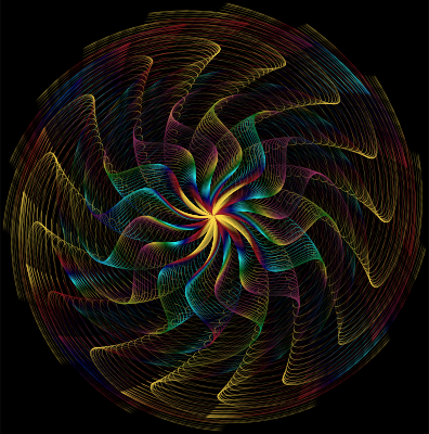Colorful abstract floral-like vortex design. Black Background can be easily removed if needed.