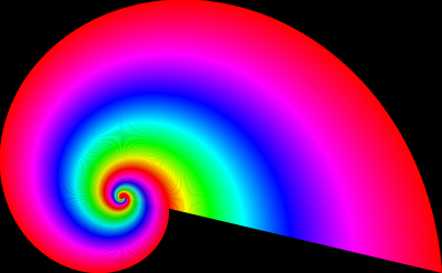 A colour spectrum mapped on a logarythmic spiral based on golden ratio. Uses a linear gradient to achieve this.