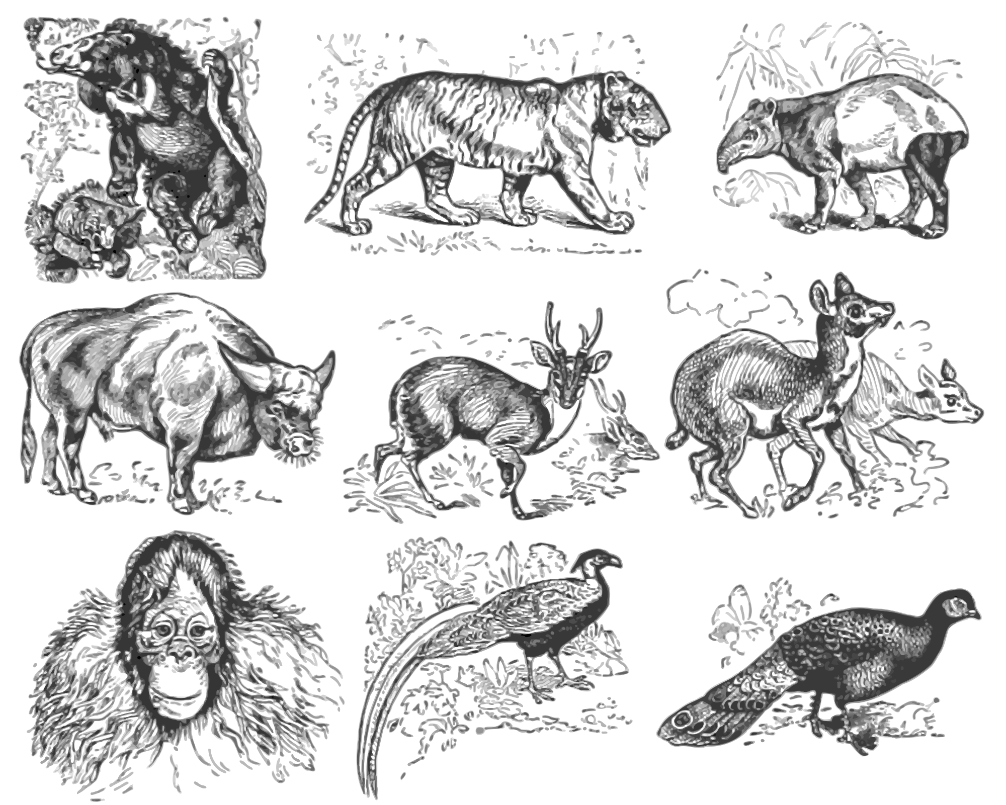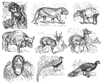 - animal Animals Asia Asian bear chevrotain deer gayal handies jungle-bear muntjac orang-utan peacock pheasant silver tapir tiger
