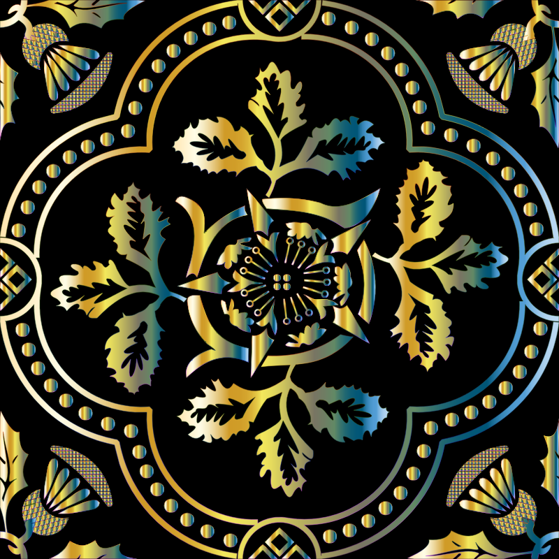 Abstract Art Chromatic Colorful Decorative Design Floral Flowers Gold Metallic Pattern Prismatic Shiny Tile remix+226523