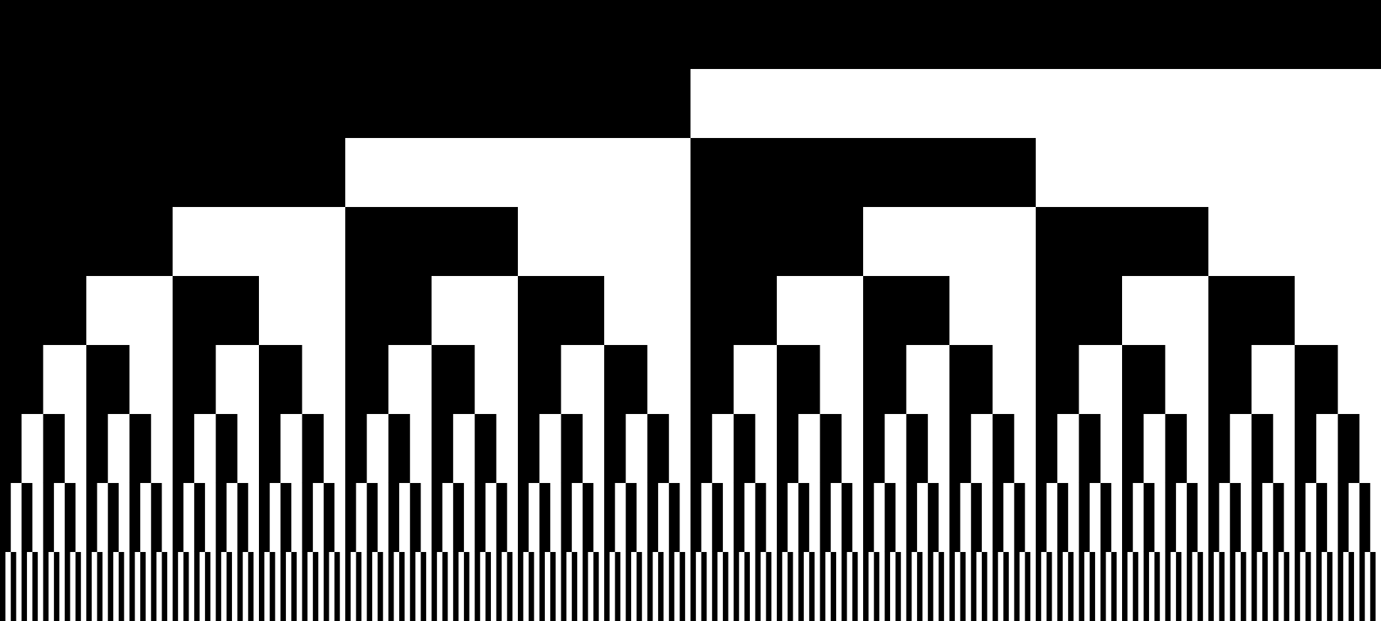 Demonstrating steps divided by two, with no gaps in between. Yet as separate blocks that can be colourized.