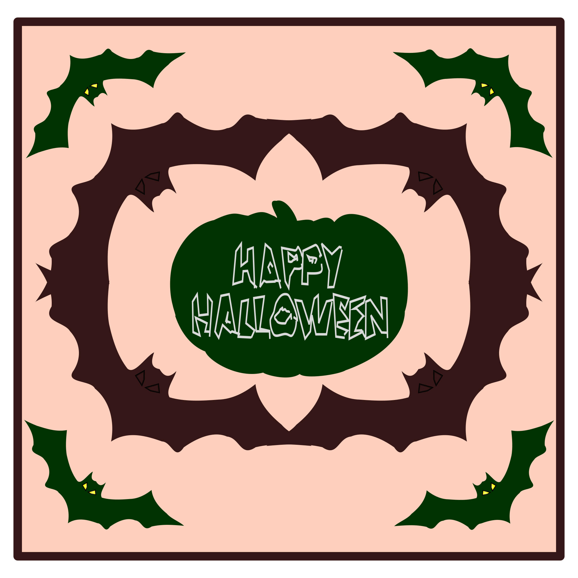 I used OCAL cliparts called "bat" uploaded by "Machovka" and "Pumpkin" uploaded by "Budwhite72" as a pumpkin silhouette.