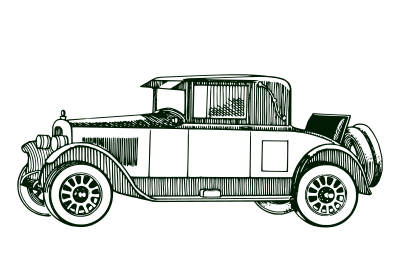 This is a lineart of a classic car depicted in dark green almost close to black.