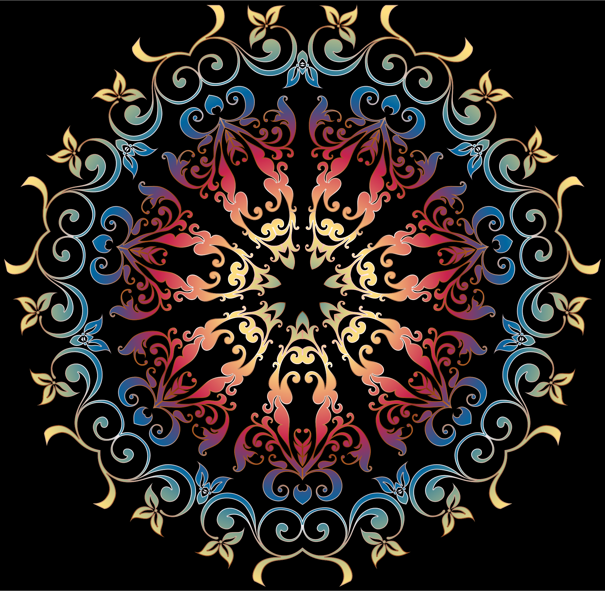 Colorful Floral Design with a black background.