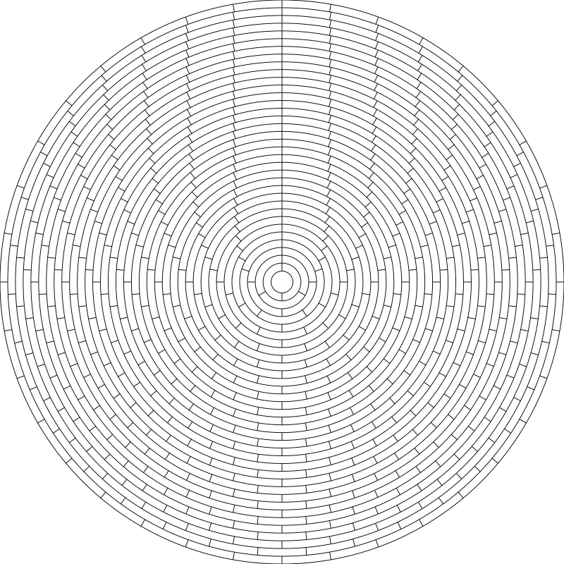 A circular grid. Circumference is divided from 1 to 36. Each area is equal sized. Outlines only.