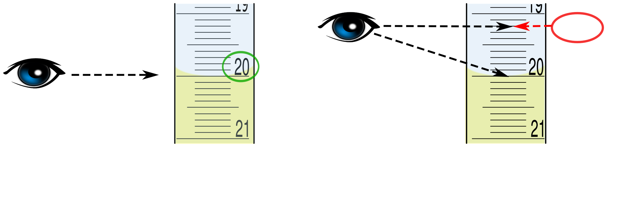 Skala richtig ablesen (gelbe Flüssigkeit) - Skala von Bürette