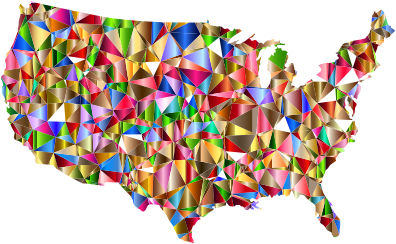 A colorful low poly US map.