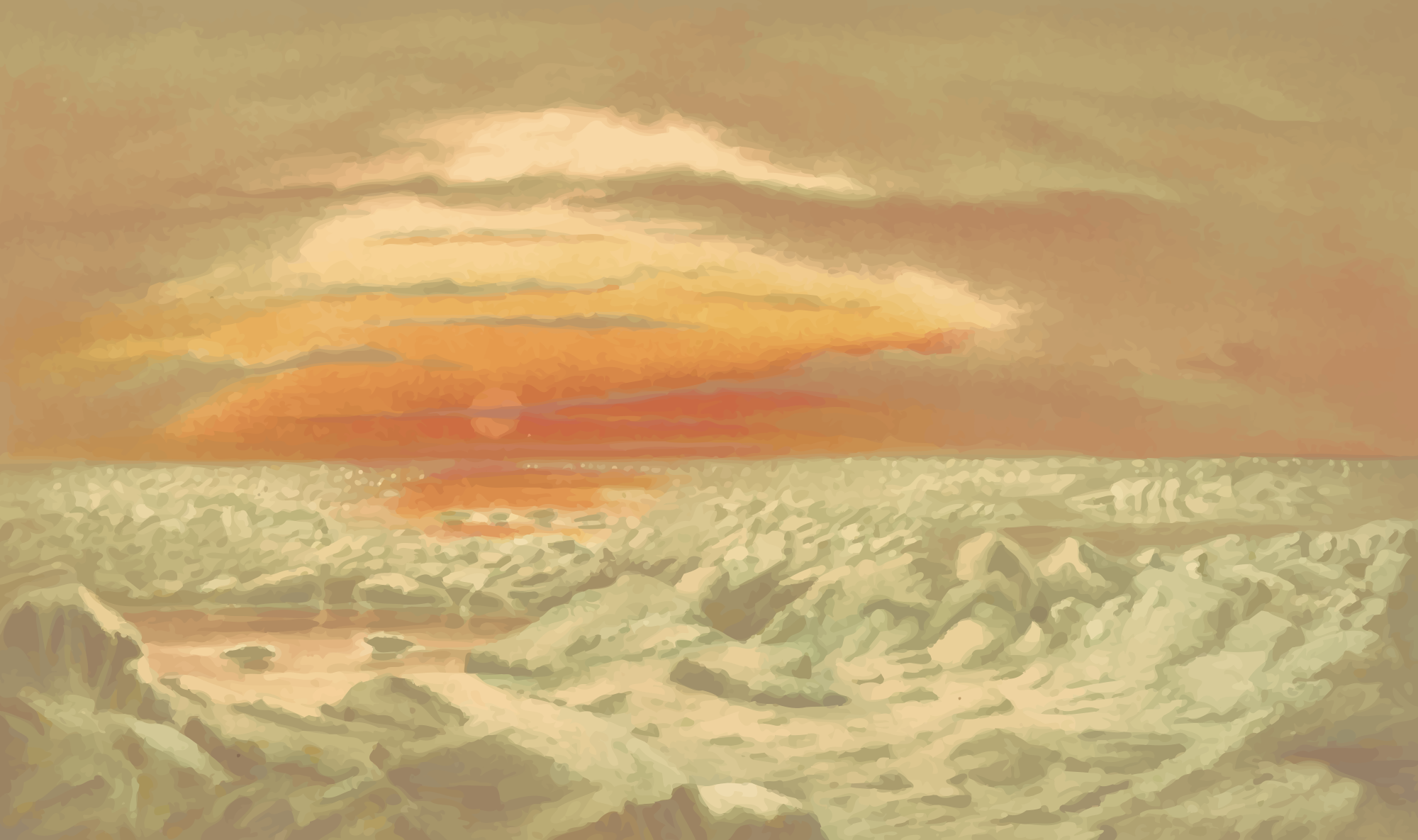 - arctic art ice iceberg midsummer night ocean sea summer watercolor watercolour