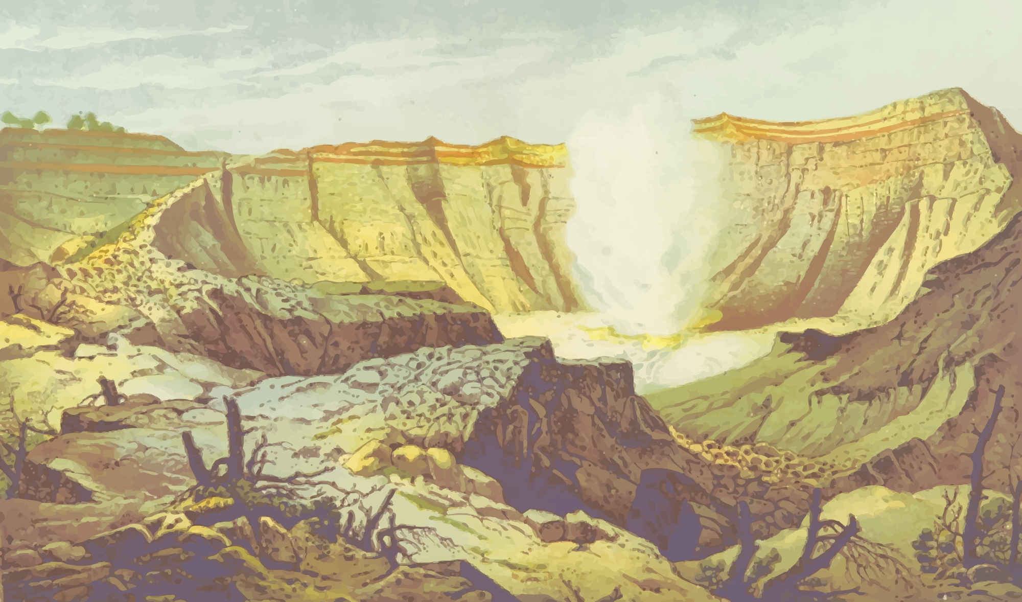 - Java Kawa Ratu Kings Crater art crater volcano watercolor watercolour